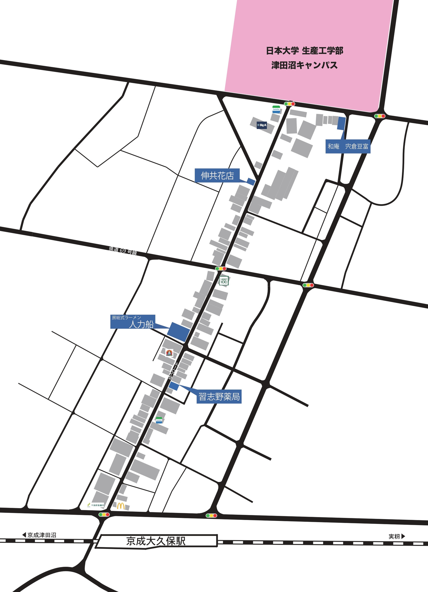 改札を出て右側、ゆうロード(学園大久保商店街)を直進